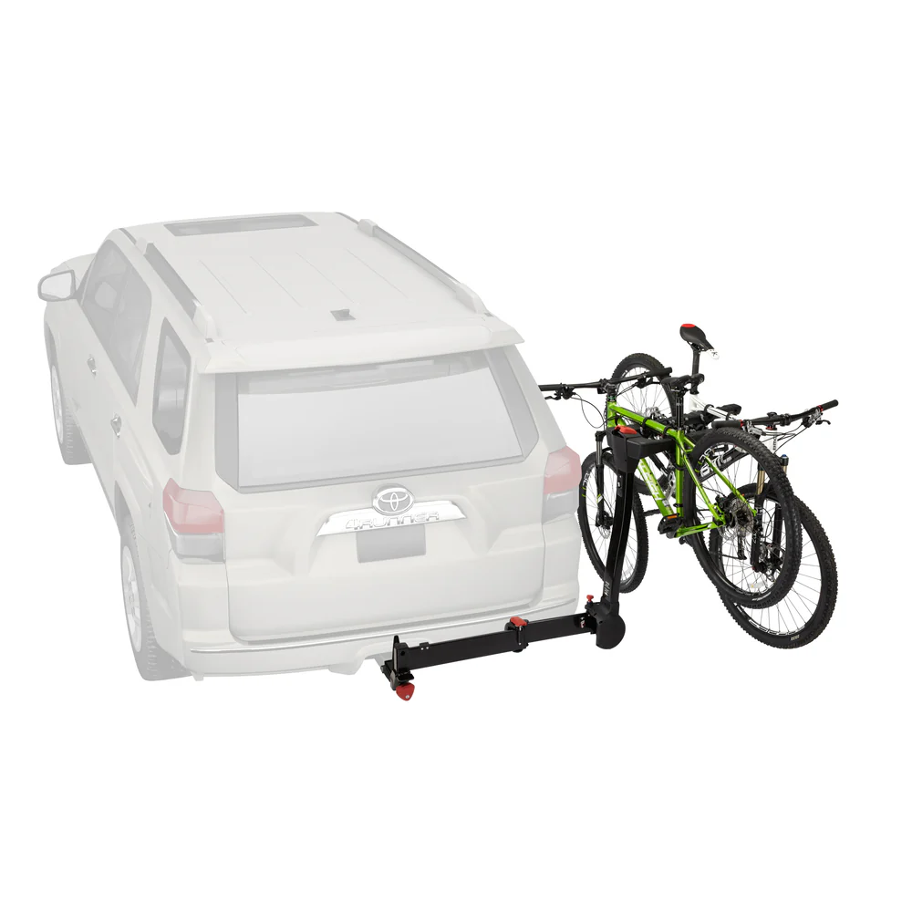 YAKIMA FULLSWING Now the family bikes can ride in style. The FullSwing™ has all the bells and whistles, from new ZipStrips™ to fully padded arms. It also swings away with one touch, for easy access to your car whenever you need. Holds up to four bikes. SPECIFICATIONS